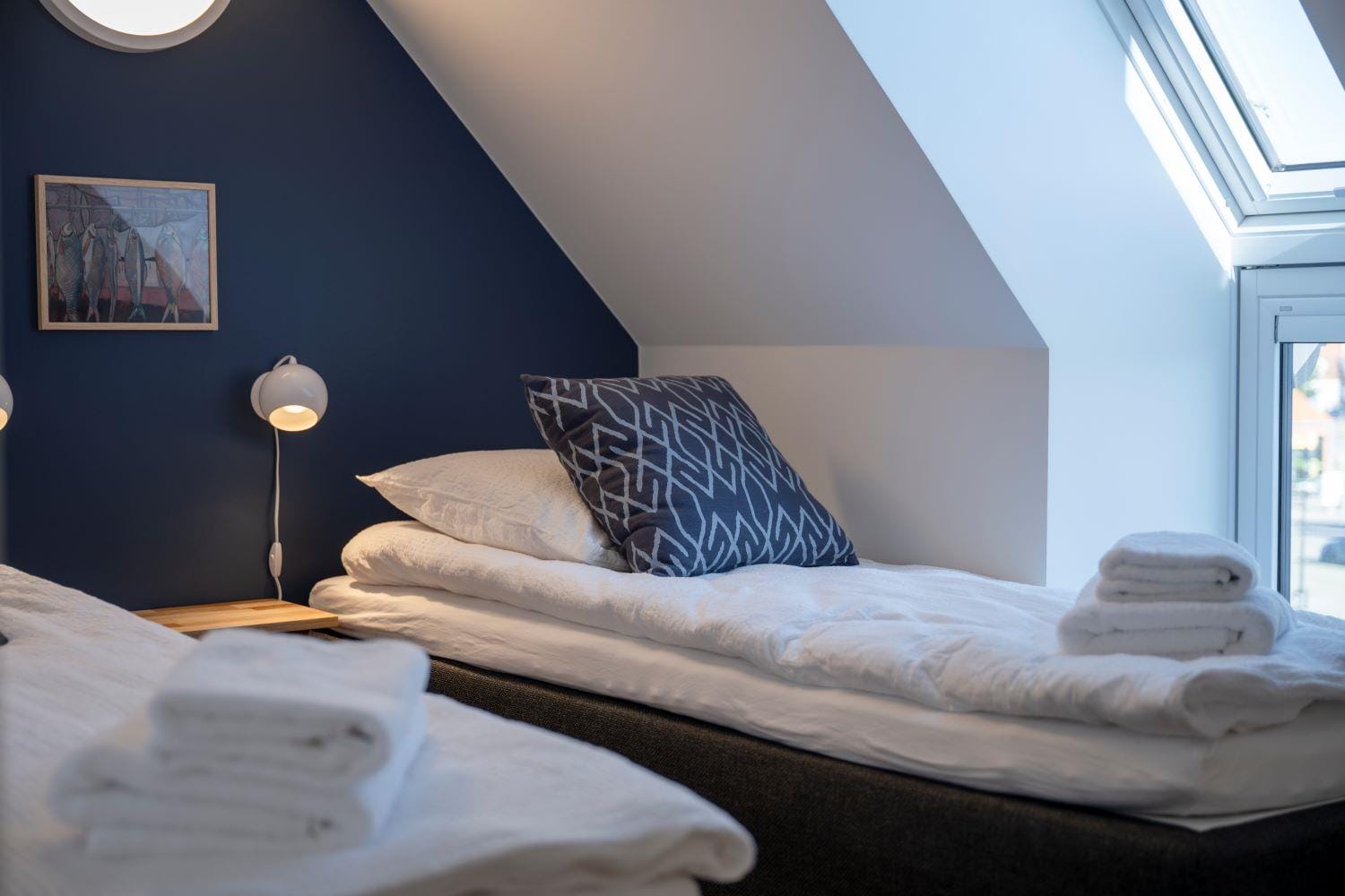 This light-filled and modern holiday apartment is located in the heart of Kerteminde, and extends over both 1st and 2nd floor. Here, both quality and comfort have been thought of, so you can relax and enjoy your holiday to the fullest. On the 1st floor you will find a cozy living room, equipped with smart TV (streaming only), a fully equipped kitchen where you can make delicious meals, and a practical guest toilet.