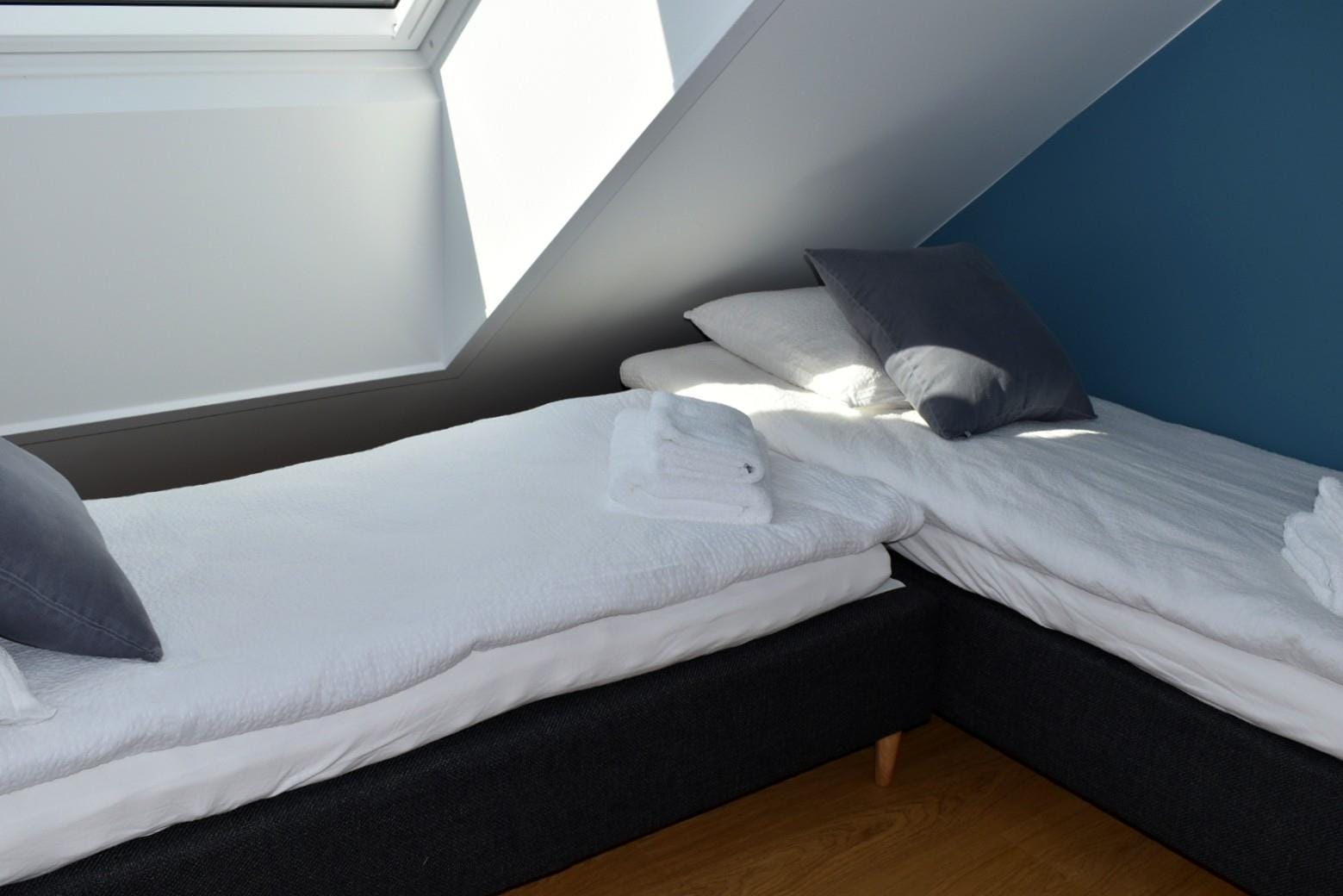 Moving up to the second floor, you’ll be greeted by a stylish bathroom with shower and underfloor heating and three comfortable bedrooms. One room with a double bed and two rooms with two single beds each ensure there’s room for the whole family or friends.
