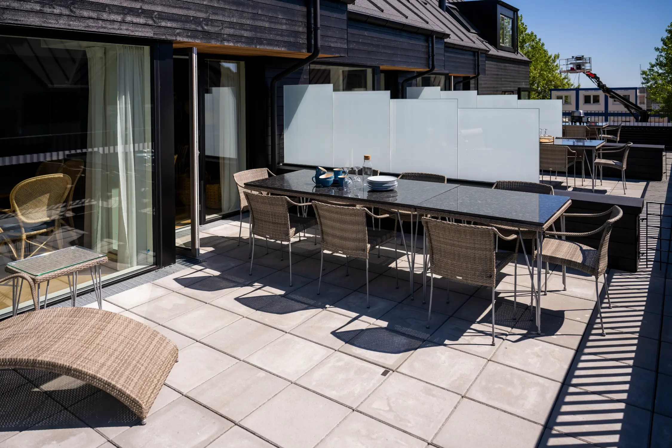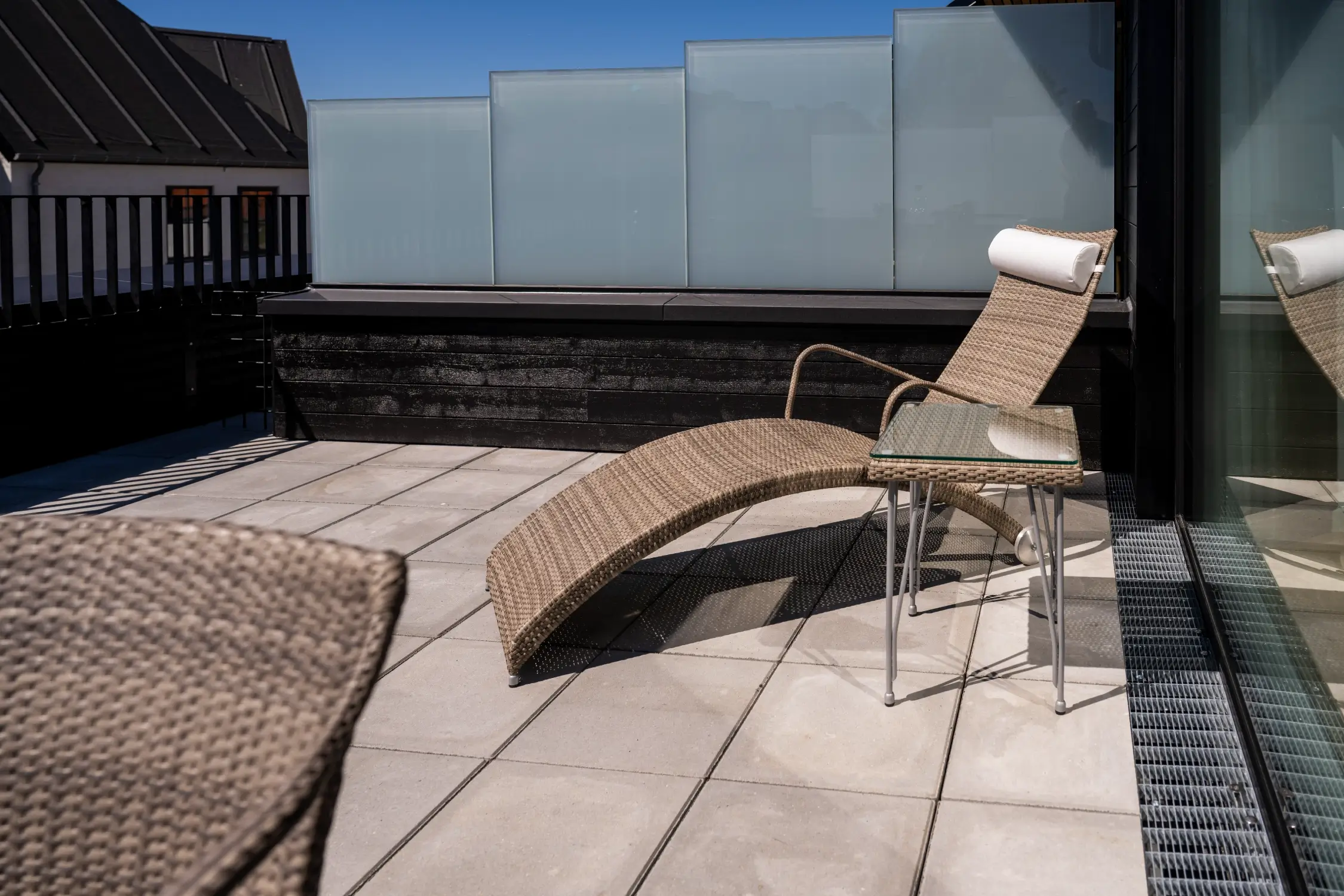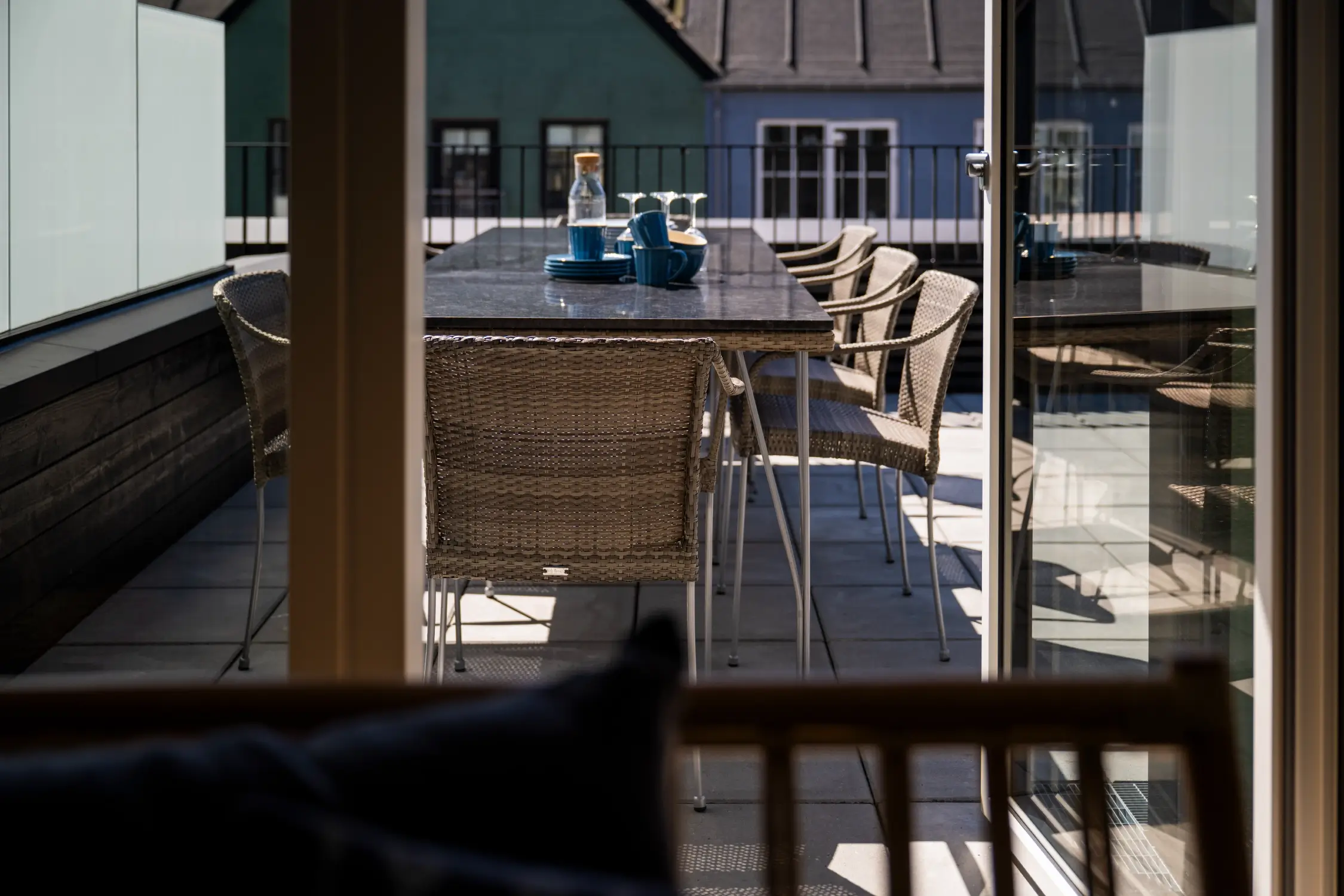 From the living room there is direct access to a large, private terrace where you can relax in comfortable garden furniture and enjoy views of the harbor and city – the ideal setting for cozy moments.
