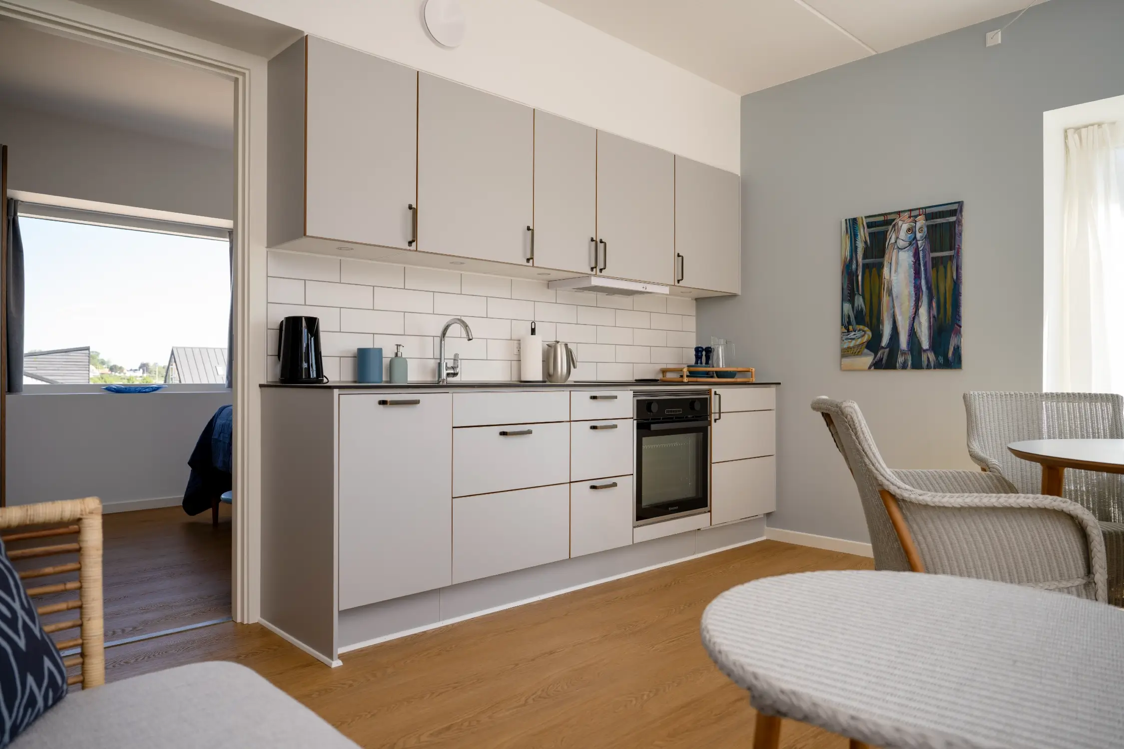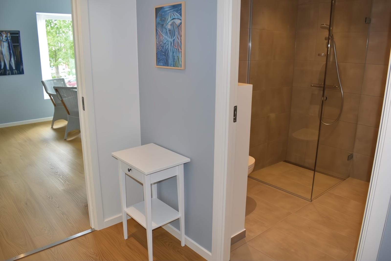 From the living room you have direct access to a private balcony, where you can relax in comfortable garden furniture and enjoy the view of the harbor – an ideal place to enjoy both the sun and the tranquil atmosphere.