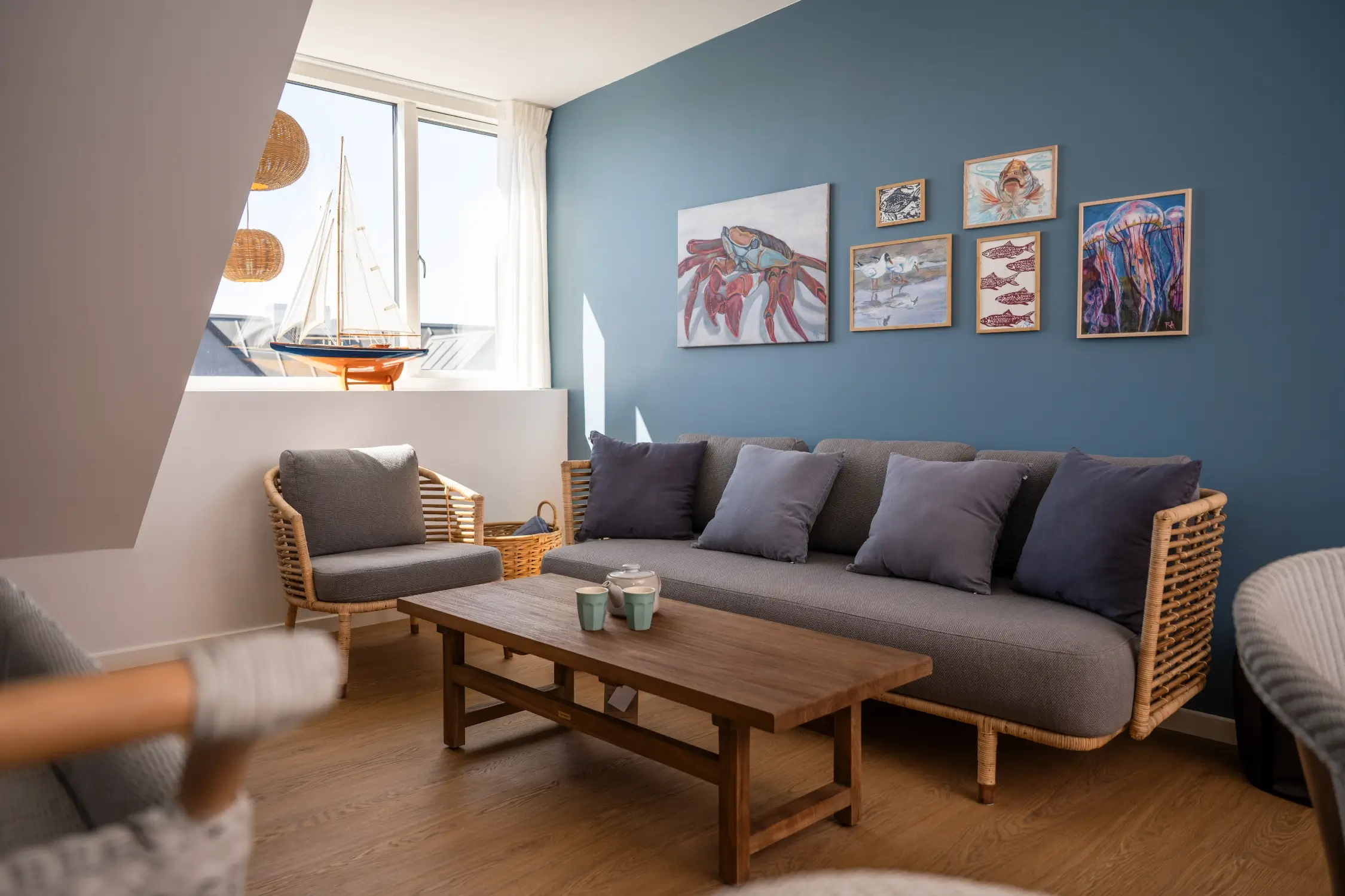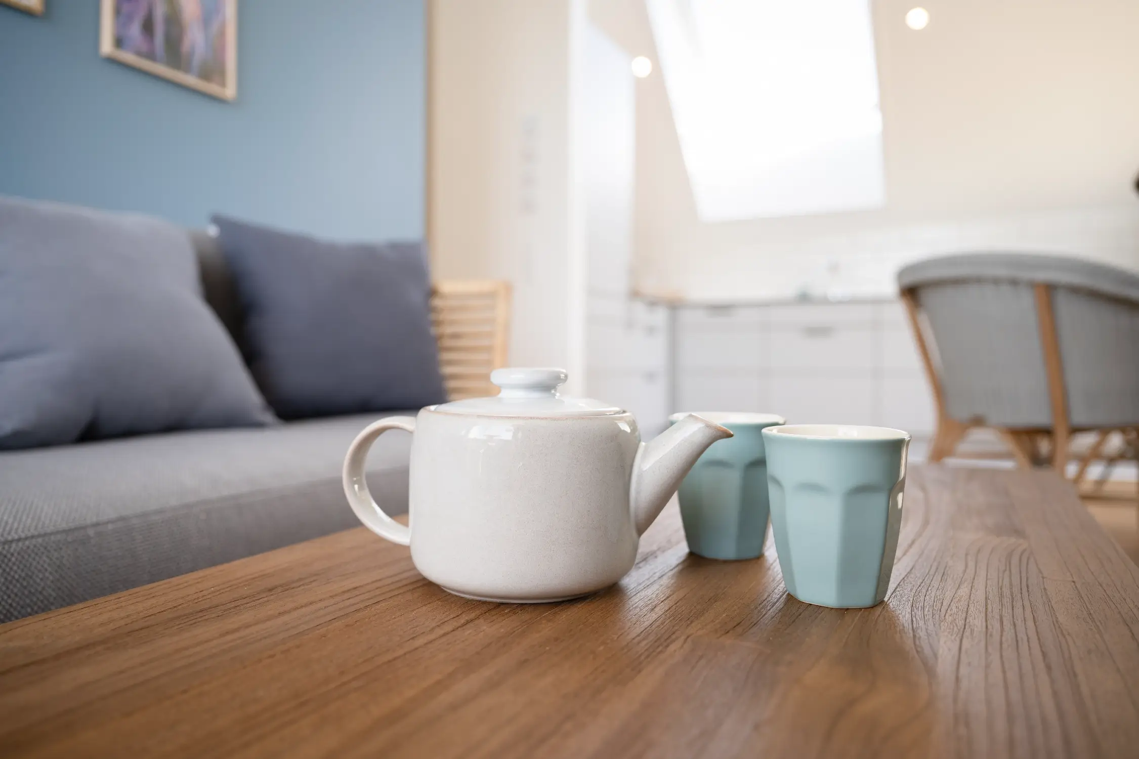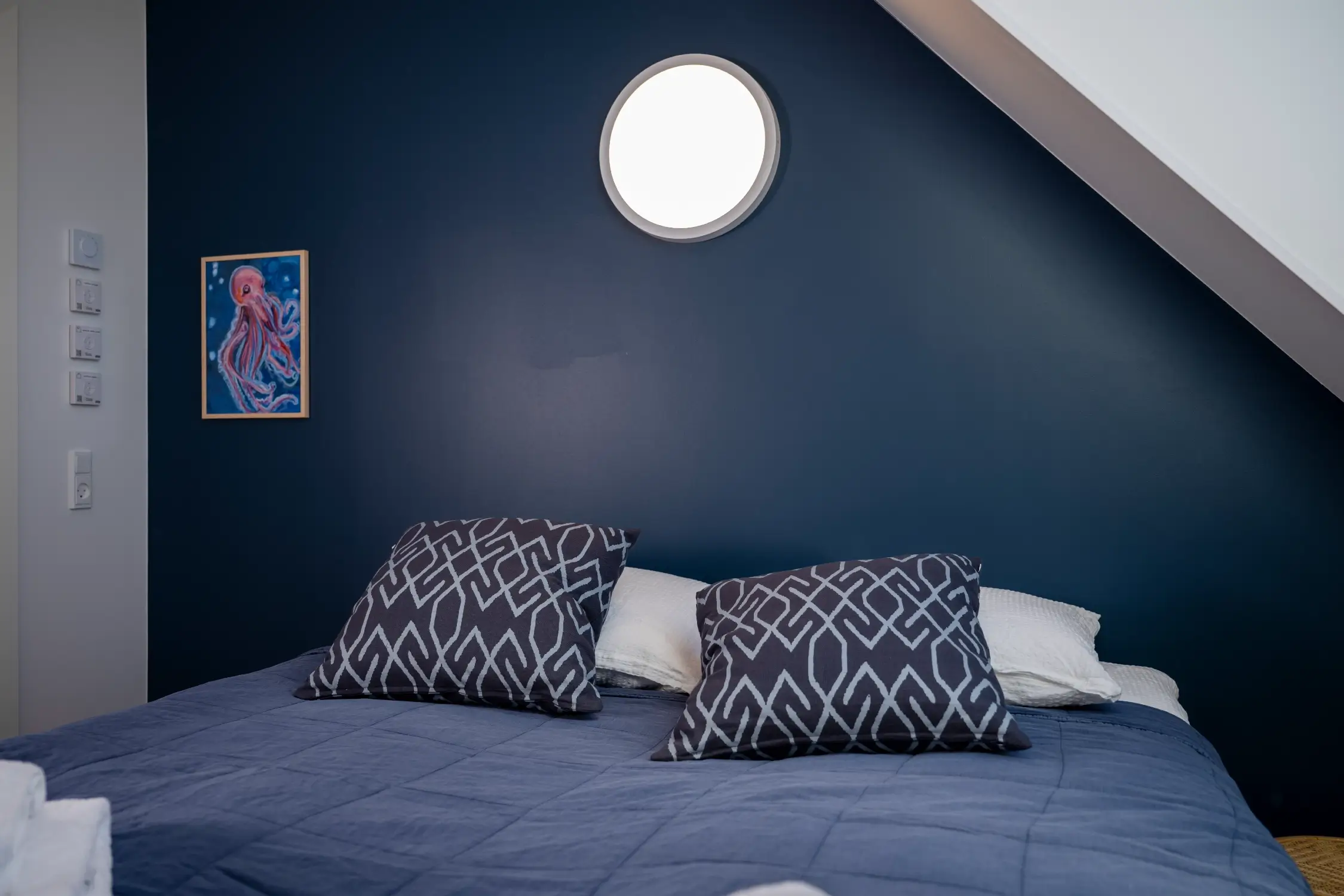From the living room you have direct access to a private balcony, where you can relax in comfortable garden furniture and enjoy the beautiful view of the harbor – a perfect place to enjoy your morning coffee or a relaxed evening.